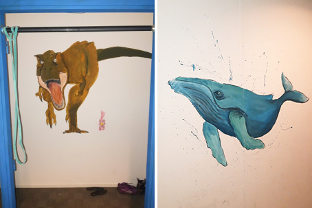 The residents get their inspiration for the murals from (daily) life: “Last summer we were in Spain and we had a beautiful view of a mountain. I took a picture of this and then painted this view. I also made a mural with elements from a serie that I watch together with a roommate. We also made murals of animals.” Are you curious about more murals? Then check out this blog about murals of other corridors in Nano.
